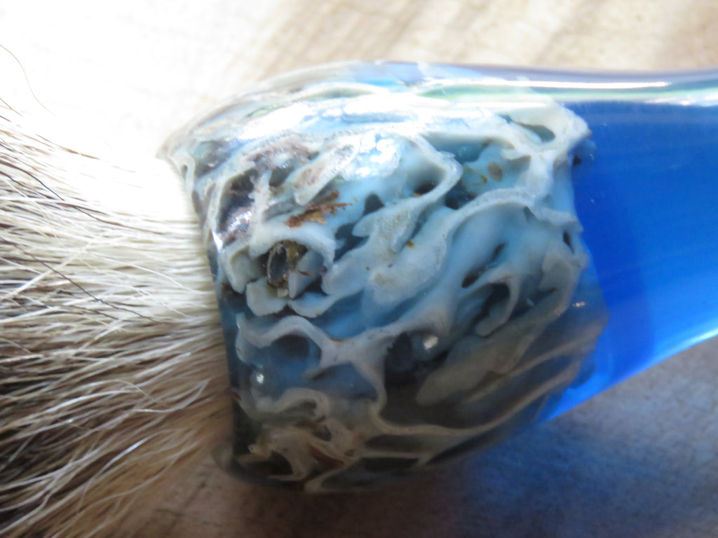 I have a few pieces of coral that I have collected over time and every now and then I make a few blanks with them, mostly blue as it just seems to hit that fresh ocean vibe so well, and it has been some time since I visited the lovely beaches of Mozambique, so this one really got my juices flowing.  Come to think of it... I need to get these last pieces into blanks and brushes and create the need to take a trip there again to walk the beaches to search for bits and bops I can use in brushes, the perfect excuse to hit the road for a trip up north-east!