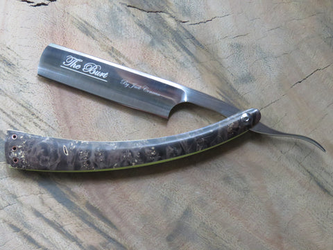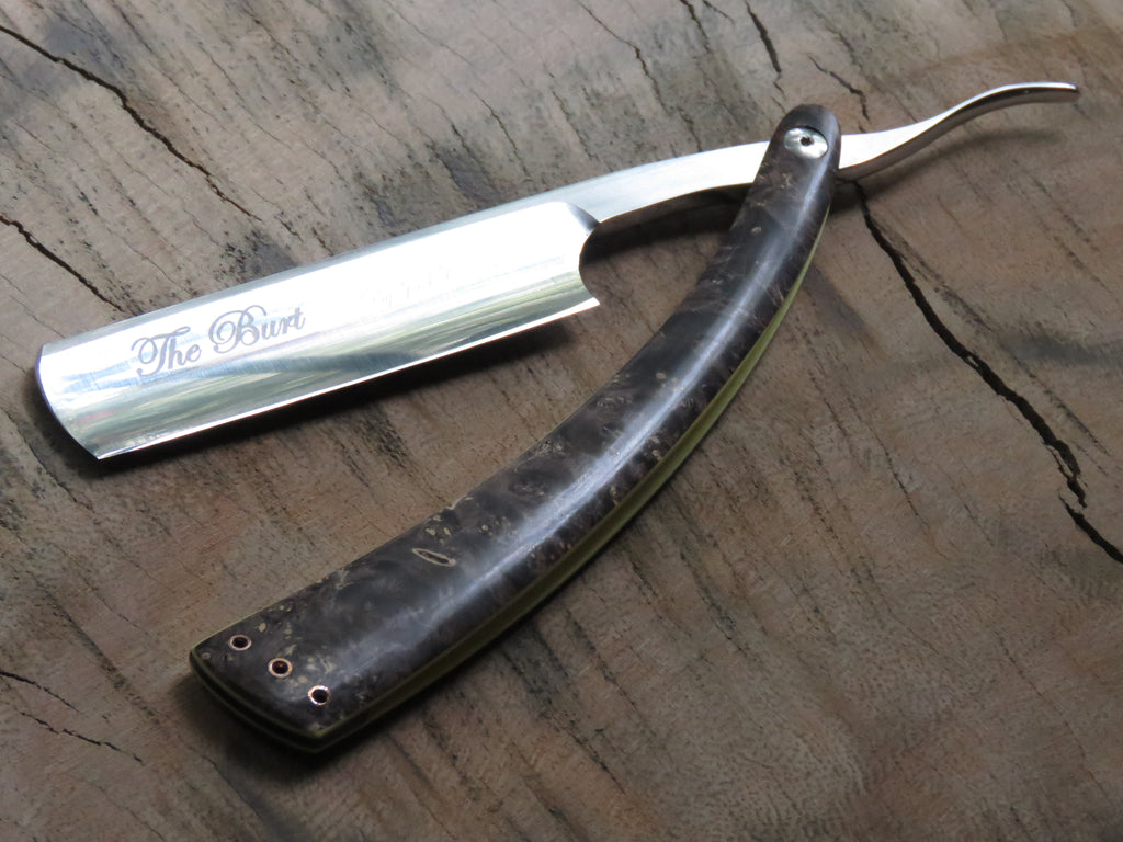 'The Burt' is a series of production razors made by Jack Connan, the essence of the series is a tributory glimpse into one of the 'more manly men' Hollywood has made famous, Burt Reynolds. This cultural icon will always be remembered for movies like Smokey and the Bandit (1977), The Longest Yard (1974), and The Cannonball Run (1981) The connection to the razor is quite obvious, it not only serves the upper lip in service, but the tang also has that iconic downturned bull-horn points, much like the lip curtain Burt himself favoured at one stage!