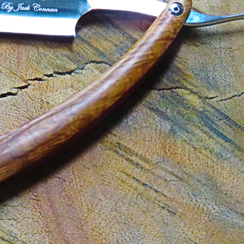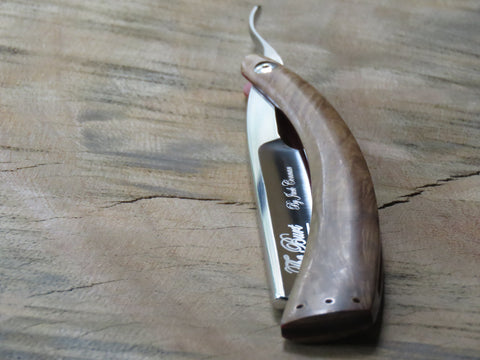 'The Burt' is a series of production razors made by Jack Connan, the essence of the series is a tributory glimpse into one of the 'more manly men' Hollywood has made famous, Burt Reynolds. This cultural icon will always be remembered for movies like Smokey and the Bandit (1977), The Longest Yard (1974), and The Cannonball Run (1981) The connection to the razor is quite obvious, it not only serves the upper lip in service, but the tang also has that iconic downturned bull-horn points, much like the lip curtain Burt himself favoured at one stage!