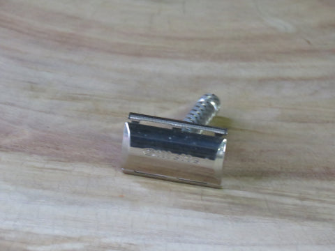 This is a three piece razor in a very good 'as new', but has no box or packaging. The razor has no damage and functions like new.