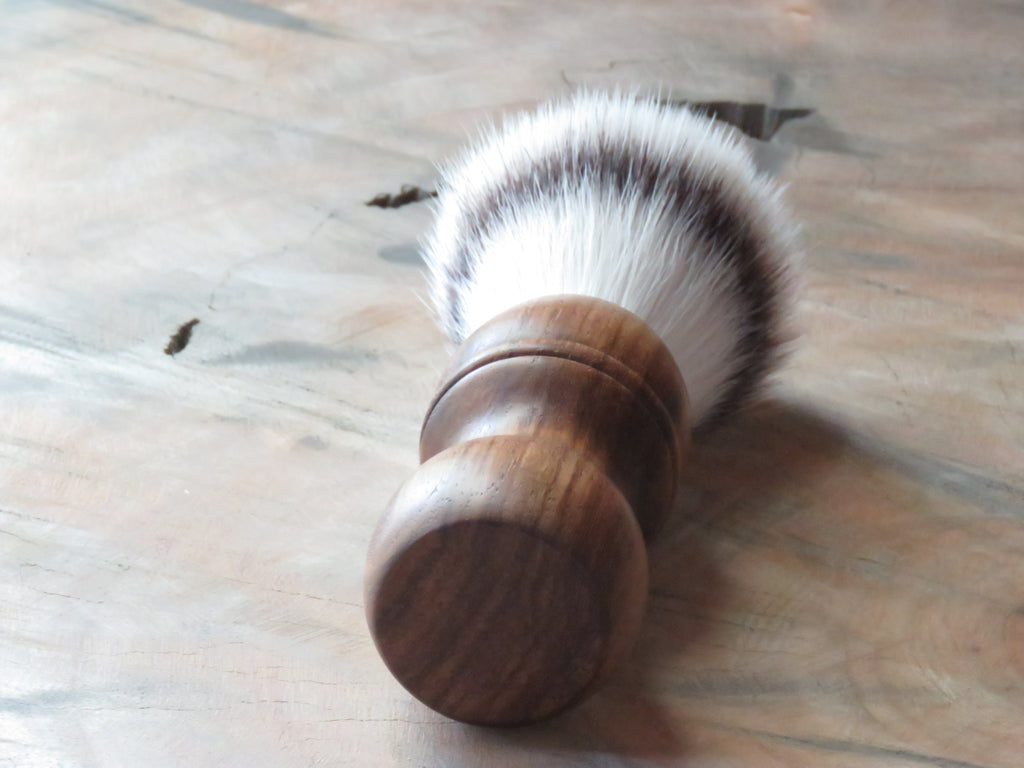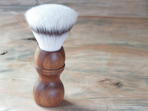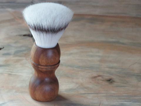The brush is fitted with a 28 mm Oumo ST1 synthetic knot, known for its very fine strands and ability to retain water better than most in its class, this knot is super soft to the touch and not really a tool for guys who likes lathering deep and hard. It is not inside it is oooooooooooon the tips' The brush stands 138 mm high with the knot set at 56 mm. The brush has a belly of 44 mm and a waist of 29 mm, it weighs a 84 grams.