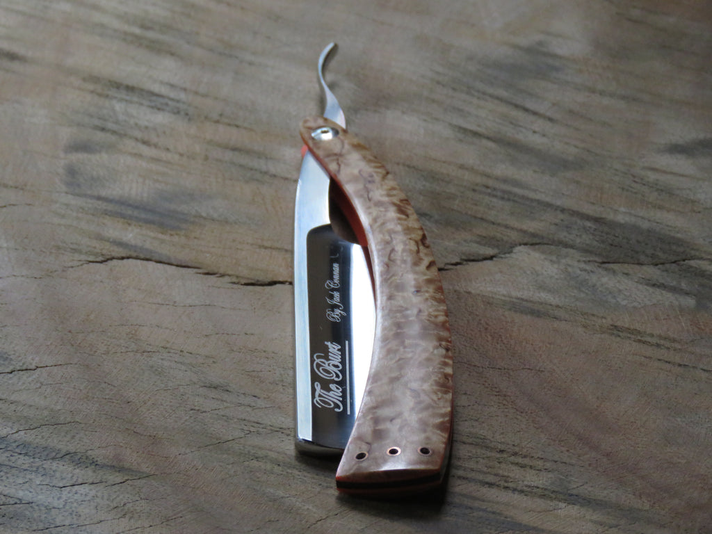 'The Burt' is a series of production razors made by Jack Connan, the essence of the series is a tributory glimpse into one of the 'more manly men' Hollywood has made famous, Burt Reynolds. This cultural icon will always be remembered for movies like Smokey and the Bandit (1977), The Longest Yard (1974), and The Cannonball Run (1981) The connection to the razor is quite obvious, it not only serves the upper lip in service, but the tang also has that iconic downturned bull-horn points, much like the lip curtain Burt himself favoured at one stage!