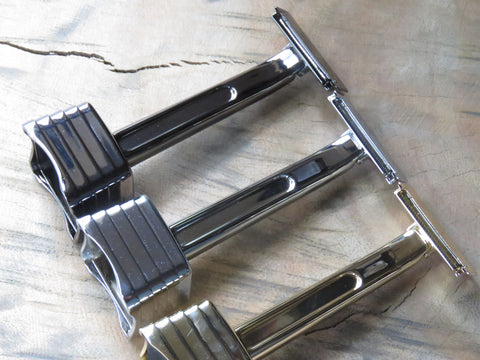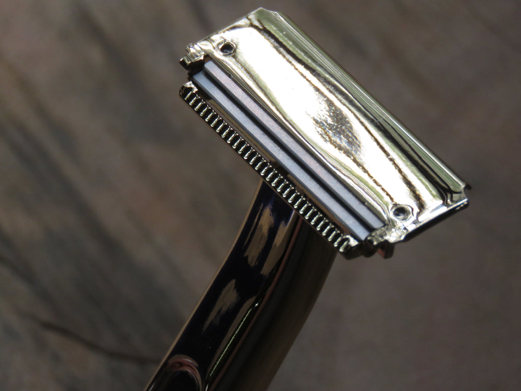 We think this is a great cross-over razor from the cartridge stuff to our world of better shaves, but also a great choice for guys suffering from ingrowns as it leaves a slightly longer stubble on pass one, leaving all cut ends well away from the skin surface. The second blade does a good job of jacking up the efficency of the razor, but don't be shy to try it with single blade either, it may surprise you!
