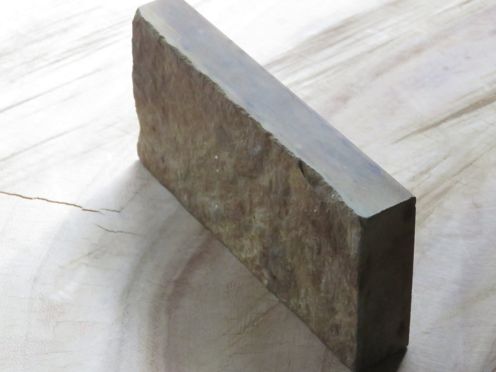 The Zulu Grey stone is a natural honing stone that is produced in the KwaZulu-Natal province of South Africa. As with most natural stones, they do not have grit values as such, but rather certain properties/attributes. The Zulu Grey and Silkvein stones are respectively used during the finishing and mid-range stadiums of honing. In working with the stones I have noticed some produce a slurry faster than others, so we will keep tabs on the stones and see if we can identify slight differences in performance based on customers feedback. It polishes up to a mirror like finish and will produce good results once you find the best method of using the stone, and also where it fits into your sharpening regime. I have had good results using with a slurry as final progression, and also when used with clean water/mineral oil to dress or revive a dulling edge, I'd follow with a diamond spray on one or the other medium and finally a solid stropping on clean leather.