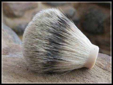 One way to determine if a brush bears a 'super' or 'silvertip' badger hair load is to look at the color of the bristle tips. A true 'silvertip' brush has tips that are an off-white. A 'super' brush on the other hand has bristle tips that are a more sterile, slightly greyed white; moreover, the light color of the tips does not extend as far down the shaft of the hair. a This knot has a soft feel to the skin, very good water retention and well balanced stiffness.
