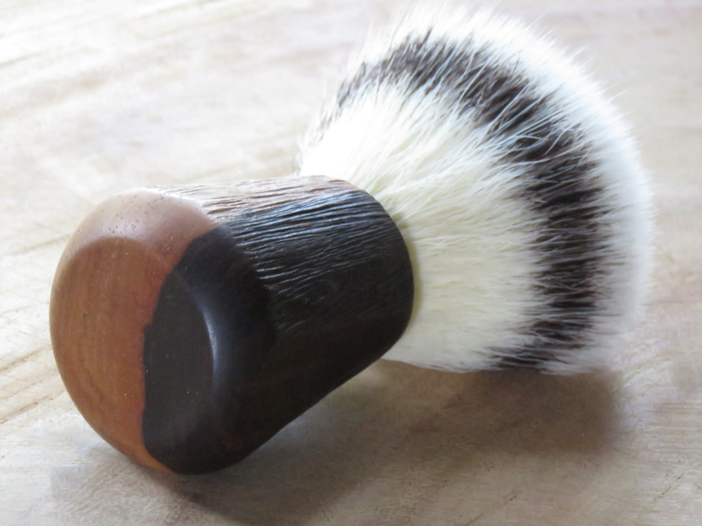 Many of our customers love these raw, natural looking brushes we make from pieces of wood that has natural imperfections and voids, and so do we, the simply ooze of personality. 'Bushveld' because of the Hardekool handle that looks as basic as something Oupa could have created with his Okapi, 'tourist' as it is fitted with a knot with synthetic hair made in Europe, this is similar to the G5 series of knots, and the final version of a knot we had made for us by a Chinese manufacturer, so we'll simply call it the G5B (for Bundu naturally) knot. This is a higher end synthetic knot we will offer from now one with the 'standard' ones. These knots are made for us on order, and we are not going to brag about it being different or better than other great synthetic knots out there, but we are going to say it is just the way we like it.