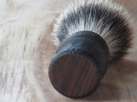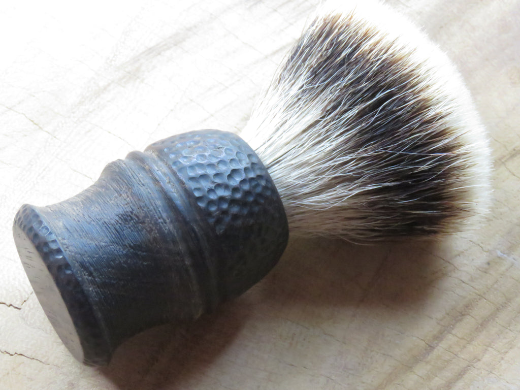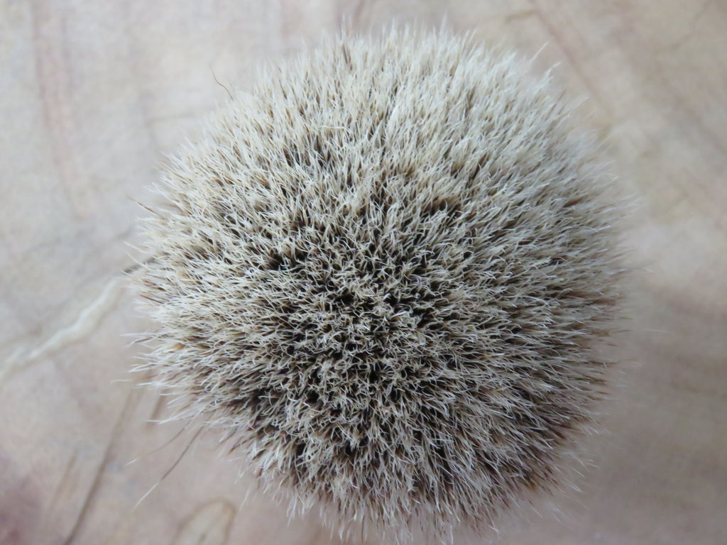 The artwork on the bowl was designed around the theme of the Voortrekker lager at the Battle of Blood river. The bowl is nice and compact and has a top diameter of just over 11 cm, and a height of 6 cm, the bottom rim is also 6 cm, the porcelain sets the weight at 180 grams. The brush is fitted with a 24 mm Finest two band knot in a fan shape, It stands 106 mm tall, with a smallest handle diameter of 37 mm and a widest diameter of 45 mm. The knot is set at 56 mm